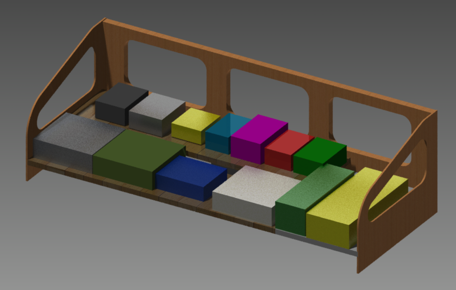 I first made a model in Autodesk Inventor to see how much space I needed for my pedals and design the exact dimensions of the parts. The idea was to build a sandwich of a thick board in the middle as a supporting structure and to apply the LED strips.