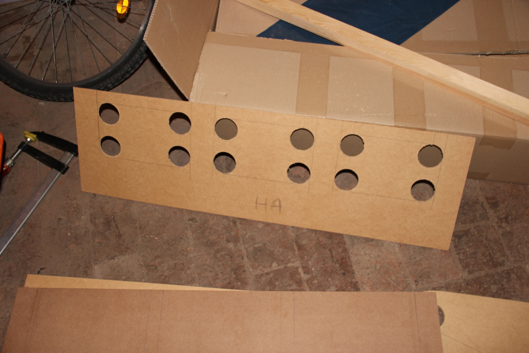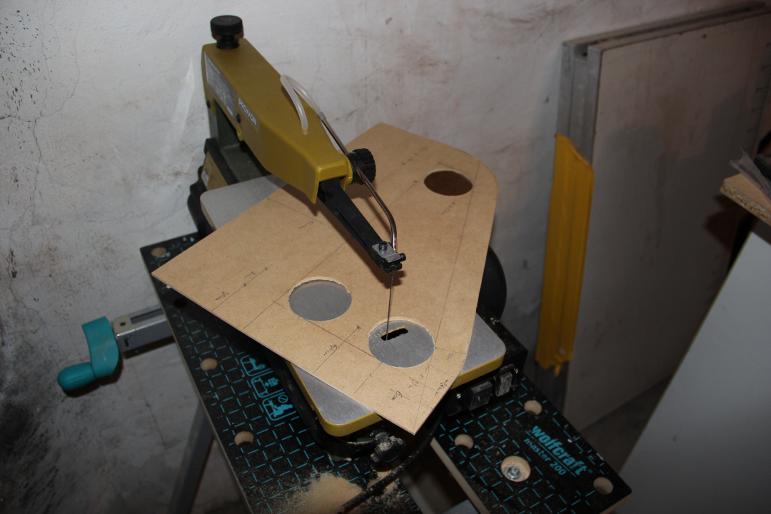 Below you can see the outer panels. The holes were cut with a hole saw and the rest was cut out with a scroll saw.
